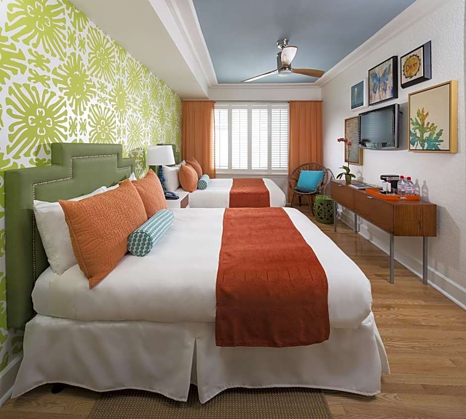 This room has views of either the pool, courtyard or cityscape. It includes a flat-screen TV and a small refrigerator.