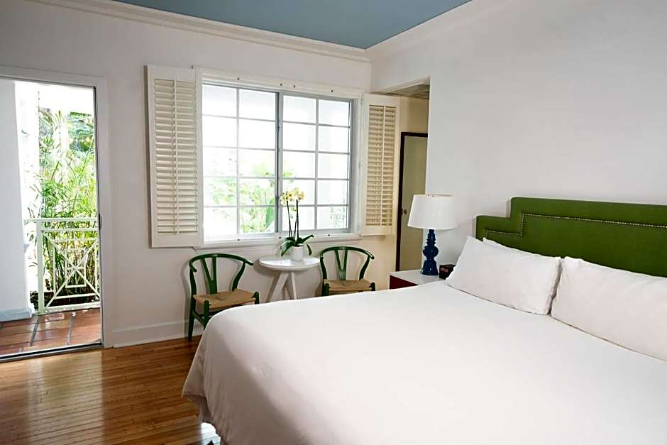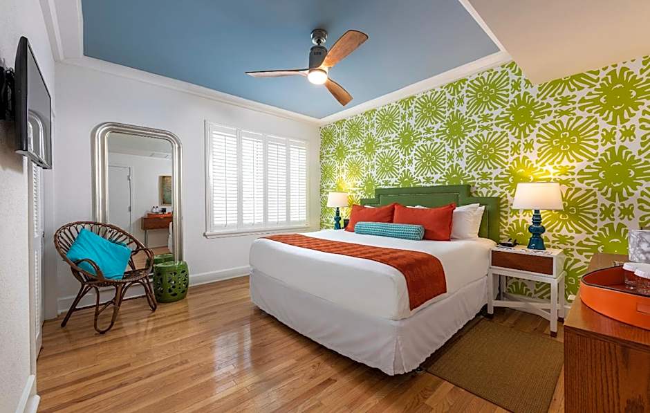 This room has views of either the pool, courtyard or cityscape. It includes a flat-screen TV and a small refrigerator.