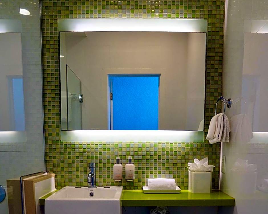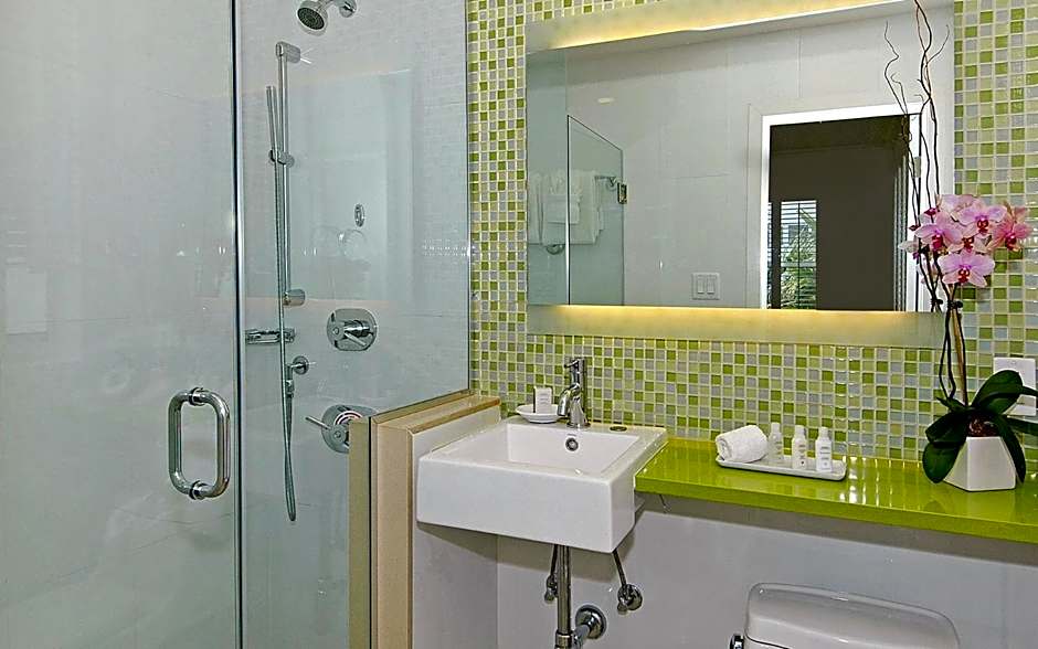 This disability accessible guestroom features a roll-in shower with grab bars, adjustable hand-held shower wands and lowered bathroom vanities and grab bars. Lowered peepholes, lowered bed heights and lowered deadbolts are provided, as are wider doorways. A closed-caption TV, telephone and doorbell for the hearing impaired are provided.